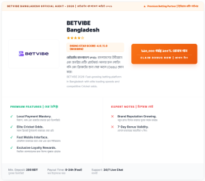 ২০২৬ সালের সেরা বেটভাইব (Betvibe) রিভিউ। ১০০% ওয়েলকাম বোনাস, বিকাশ ও নগদের মাধ্যমে ৫ মিনিটে উইথড্রয়াল এবং সেরা স্লট গেমের অভিজ্ঞতা জানুন।