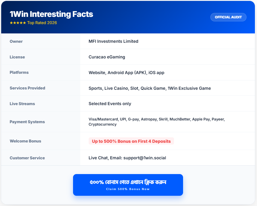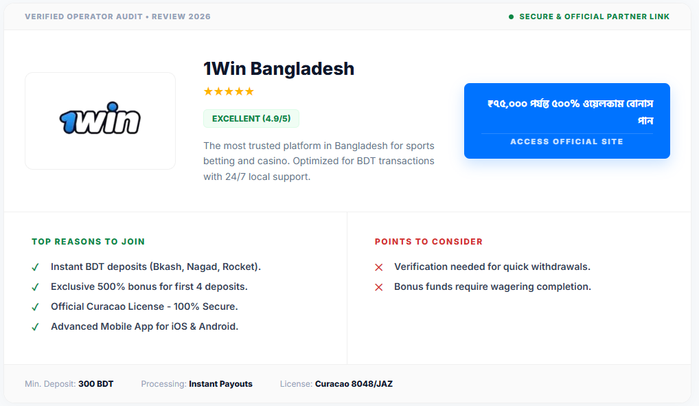 ১উইন-এর সবচেয়ে বড় সুবিধা হলো এতে কোনো জটিল Wagering Requirements (বাজি ধরার কঠোর শর্ত) নেই, যা একে অন্য সব সাইট থেকে আলাদা এবং শ্রেষ্ঠ করে তুলেছে।