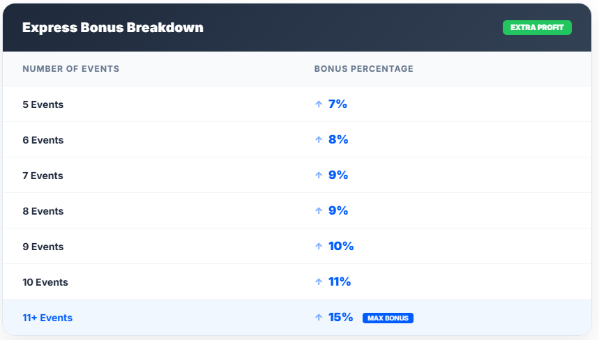 - ১১ বা তার বেশি ইভেন্ট: সর্বোচ্চ ১৫% অতিরিক্ত বোনাস।