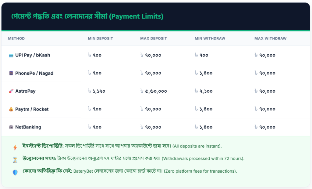 ব্যাটারিবেট পেমেন্ট মেথড: দ্রুত ডিপোজিট এবং উইথড্রয়াল গাইড (Payment Methods)