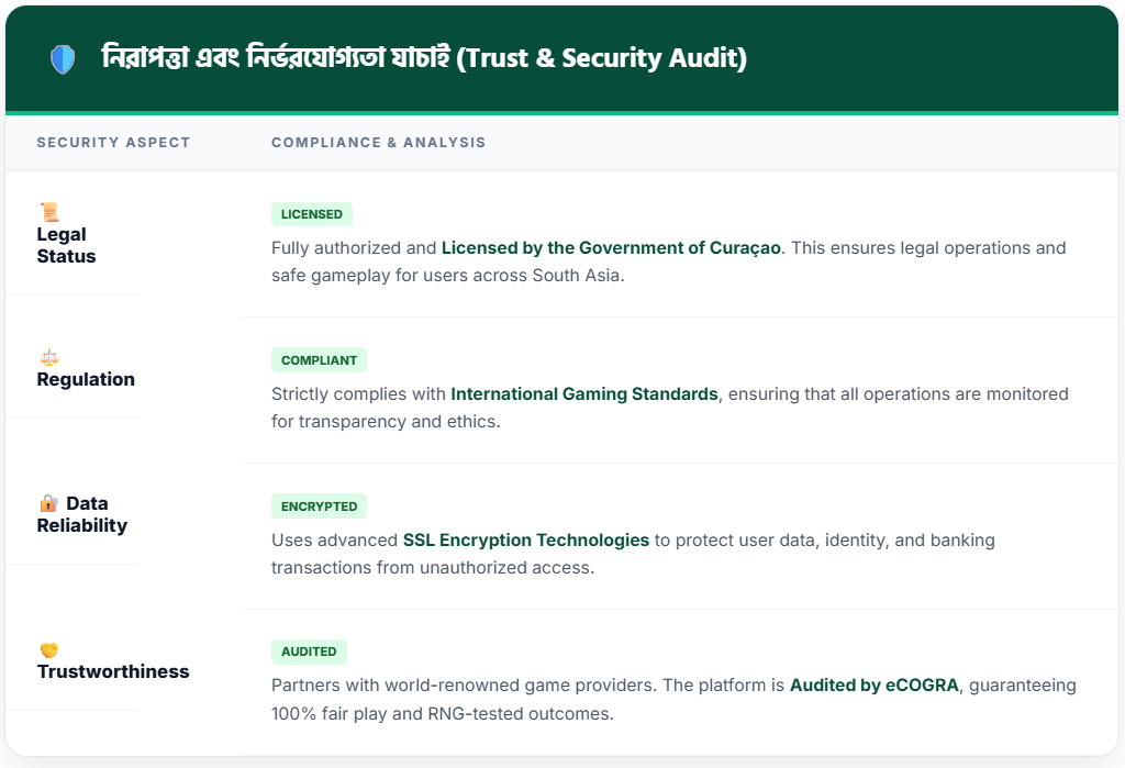 Licensed Fully authorized and Licensed by the Government of Curaçao. This ensures legal operations and safe gameplay for users across South Asia. |