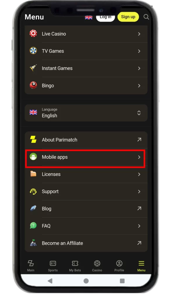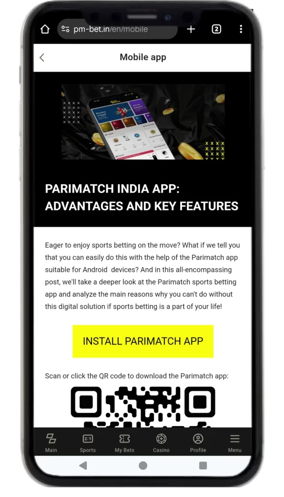 ১. পারিম্যাচ অফিসিয়াল ওয়েবসাইটে গিয়ে মেনু থেকে ‘Mobile Apps’ অপশনটি নির্বাচন করুন। ২. আপনার অ্যান্ড্রয়েড ডিভাইসের জন্য Parimatch APK ফাইলটি ডাউনলোড করুন। ৩. ফোনের সেটিংসে গিয়ে “Unknown Sources” থেকে অ্যাপ ইনস্টল করার অনুমতি দিন। ৪. ডাউনলোড করা ফাইলটিতে ক্লিক করে “Install” বাটন চাপুন। সফলভাবে ইনস্টলেশন সম্পন্ন হলে অ্যাপটি ওপেন করুন।