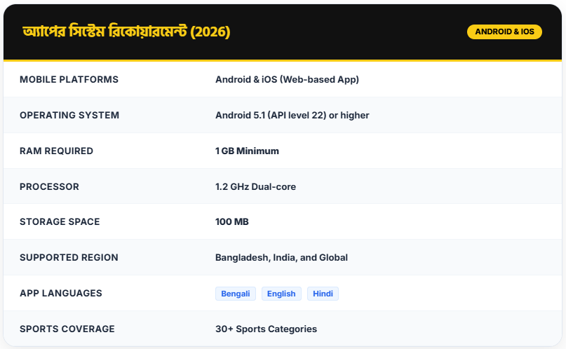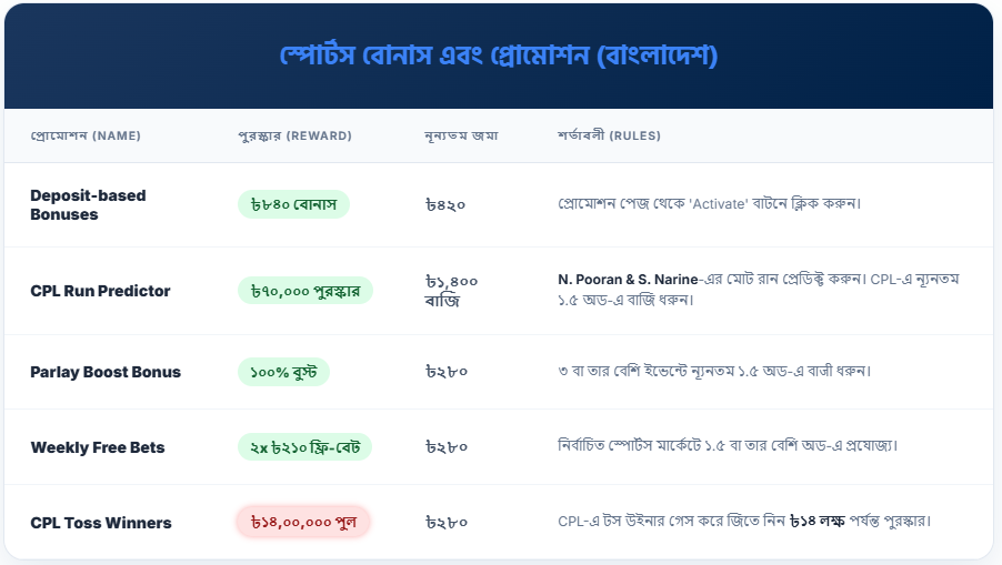 - স্পোর্টস ইভেন্ট বোনাস: আইপিএল (IPL), বিপিএল (BPL) বা বড় কোনো ফুটবল ইভেন্ট চলাকালীন বিশেষ প্রমোশন ও জ্যাকপট জেতার সুযোগ থাকে।
