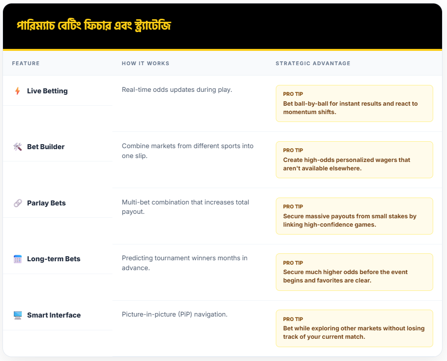 পারিম্যাচ লাইভ বেটিং এবং বেট বিল্ডার: আপনার বাজিতে আনুন নতুনত্ব (Features Guide)