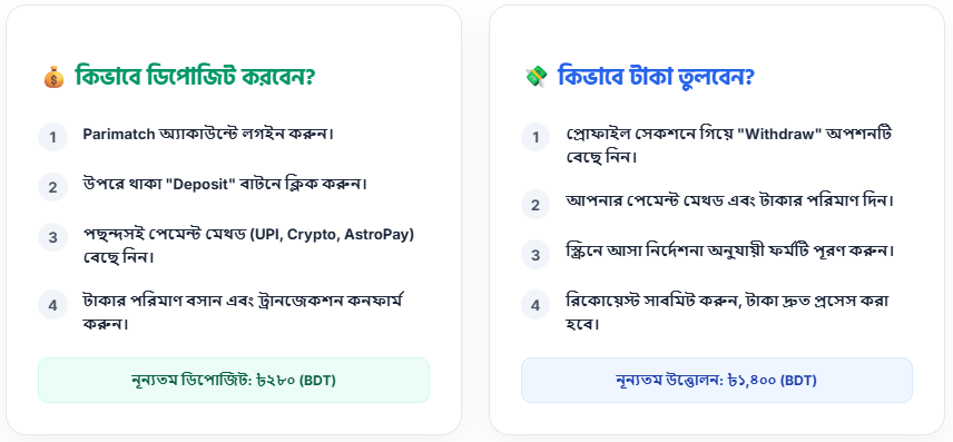 পারিম্যাচ-এ কীভাবে টাকা জমা এবং উত্তোলন করবেন? (Deposit & Withdrawal Guide)