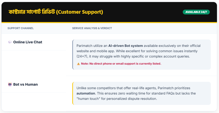 পারিম্যাচ কাস্টমার সাপোর্ট: অনলাইন চ্যাট এবং দ্রুত সহায়তা (Customer Support)