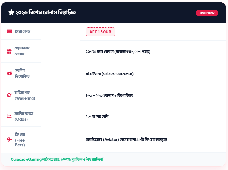 - উচ্চ বাজির শর্ত: বোনাস টাকা তোলার শর্তগুলো কিছুটা কঠিন হতে পারে।