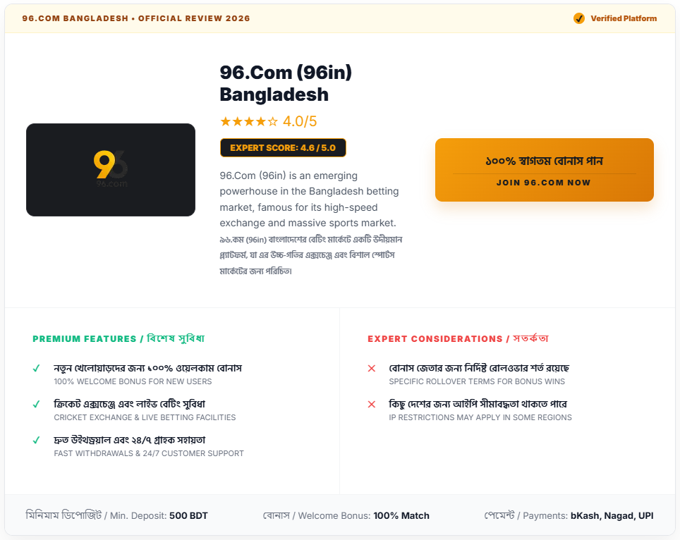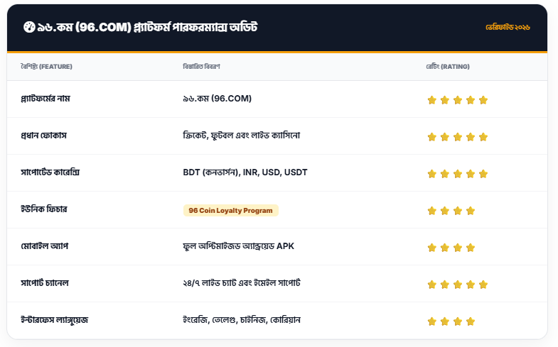 ৯৬.কম (96.COM) বিশেষজ্ঞ রেটিং: পারফরম্যান্স বিশ্লেষণ (Expert Rating)