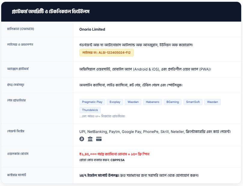 পারিপেসা (Paripesa) বর্তমানে ভারত ও বাংলাদেশের অনলাইন ক্যাসিনো মার্কেটে একটি দ্রুত বর্ধনশীল নাম। ওনোরিও লিমিটেড (Onorio Limited) দ্বারা পরিচালিত এই প্ল্যাটফর্মটি মূলত স্লট গেম প্রেমীদের জন্য তৈরি করা হয়েছে। এখানে আপনি বিশ্বের সেরা সব প্রোভাইডার থেকে হাজার হাজার স্লট গেমের কালেকশন পাবেন। এটি কমোরোস (Union of Comoros) সরকার কর্তৃক লাইসেন্সপ্রাপ্ত, যা এর বৈধতা নিশ্চিত করে।