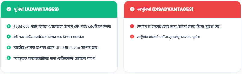 যেকোনো প্ল্যাটফর্মে টাকা বিনিয়োগ করার আগে তার ভালো এবং মন্দ—উভয় দিকই জেনে নেওয়া জরুরি। পারিপেসা (Paripesa)-এর ক্ষেত্রেও কিছু চমৎকার সুবিধার পাশাপাশি কিছু সীমাবদ্ধতা রয়েছে যা আপনার জানা উচিত।