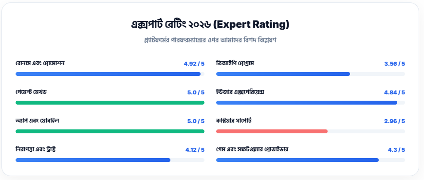 বিশেষজ্ঞ রেটিং: পারিপেসা (Paripesa) ক্যাসিনোর পারফরম্যান্স (Expert Rating)