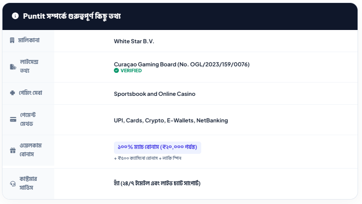 পানটিট (Puntit) সম্পর্কে গুরুত্বপূর্ণ এবং কারিগরি তথ্যগুলো নিচে দেওয়া হলো যা আপনাকে এই সাইটটি বুঝতে সাহায্য করবে: