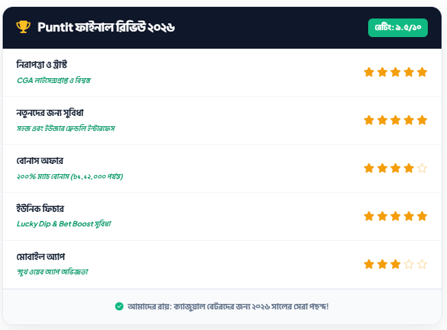 পানটিট (Puntit) রিভিউ ২০২৬: নতুন বুকমেকারের বিস্তারিত বিশ্লেষণ
