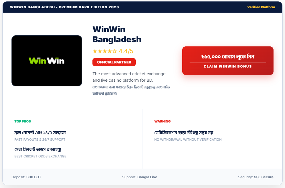 - সফলতা নিশ্চিত (Success Guaranteed): আপনি যদি টানা ২০টি স্পোর্টস বেট হেরে যান, তবে উইন-উইন আপনাকে প্রমো পয়েন্ট ক্যাশব্যাক দেবে (১০,০০০ পয়েন্ট পর্যন্ত), যা দিয়ে আপনি আবার বাজি ধরতে পারবেন।